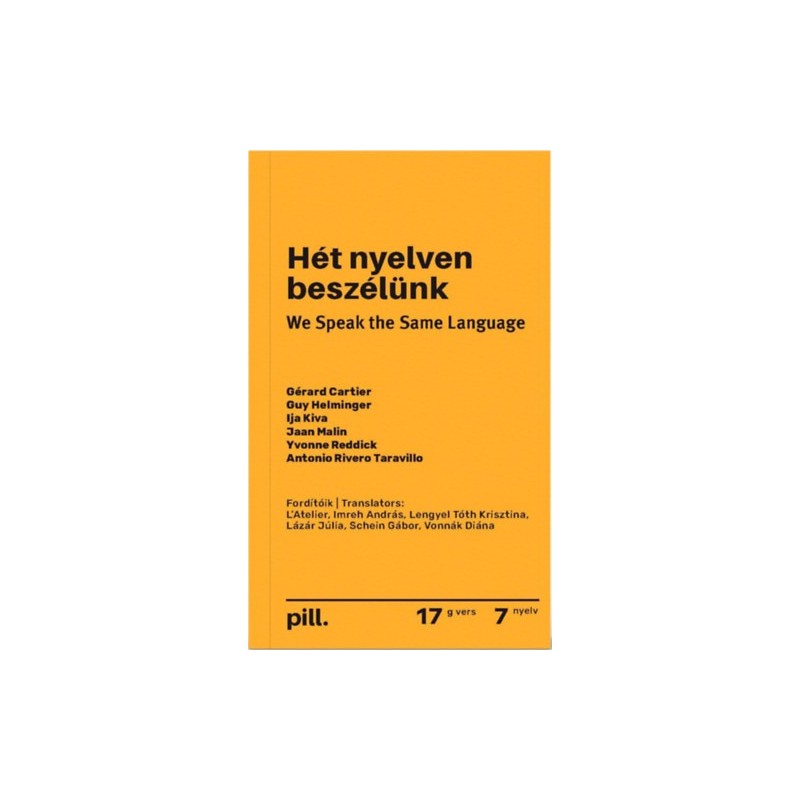 2023 tavaszán hat kortárs európai költő érkezett Magyarországra, hogy együtt alkossanak. A Hét nyelven beszélünk kötet első, "Balaton-abszint" című fejezete kaleidoszkópként ad az itt született versekből válogatást arról, milyenek vagyunk mi most. Minden alkotó legfrissebb verseit is adta a kötet egy-egy fejezete számára - a hat eredeti: angol, észt, francia, német, spanyol és ukrán nyelveken. A hetedik nyelv pedig, ragyogó műfordító-társaiknak köszönhetően: a magyar. In the spring of 2023, six European poets came to Hungary to work together, and it is their poetry that is showcased in We Speak the Same Language. The first of the anthology's seven chapters, "Balaton Absinth", serves as a kaleidoscope, offering a selection of the poems that were created here, reflecting who we are now. Each of the following six chapters is dedicated to the latest poems by the six contributors in their original tongue - English, Estonian, French, German, Spanish, and Ukrainian. The seventh language of the volume's title is - thanks to the magnificent work of the translators - Hungarian. KÖLTŐK | POETS: GÉRARD CARTIER, GUY HELMINGER, IJA KIVA, JAAN MALIN, YVONNE REDDICK, ANTONIO RIVERO TARAVILLO FORDÍTÓIK | TRANSLATORS: L'ATELIER, IMREH ANDRÁS, LENGYEL TÓTH KRISZTINA, LÁZÁR JÚLIA, SCHEIN GÁBOR, VONNÁK DIÁNA