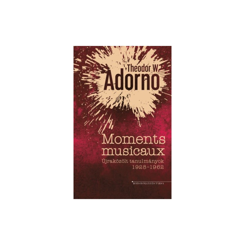 Theodor W. Adorno 1963 őszén töltötte be hatvanadik életévét, s ez alkalomból zenei esszé- és tanulmányírói munkássága keresztmetszetét bemutató kötet összeállításába fogott. Így keletkezett a Moments musicaux, Adorno sok tekintetben reprezentatívnak tekinthető, zenei tárgyú esszégyűjteménye. A kötetbe felvett írások egy részének újraközlését a szerző hatástörténeti jelentőségük miatt látta indokoltnak, de olyan szövegek is helyet kaptak itt, amelyeket Adorno az életművében később meghatározónak bizonyuló gondolati motívumkincs első, "átütő erejű" megfogalmazásainak tekintett. A kötet írásai között találjuk többek között a méltán híres esszéket Beethoven kései stílusáról vagy "semlegesített" fő művéről, a Missa Solemnisről, az irodalmi szépségű szöveget Schubertről, a híres jazz-tanulmányt, és persze olyan, Adorno számára kedves és fontos szerzőkről szóló írásokat is, mint Winfried Zillig, Kurt Weill, Arnold Schönberg vagy Ernst Křenek. Az egyes művekhez vagy életművekhez közelebb álló elemzéseket a zene hermeneutikájáról és előadói kultúrája megváltozásáról szóló elemzések egészítik ki. Az itt olvasható írások némelyike korábban már megjelent magyarul, de ezek több, eltérő koncepciót követő fordító munkájaként láttak napvilágot. A Moments musicaux most teljes egészében, egységes nyelven szólal meg, Weiss János értő és informatív utószavával.