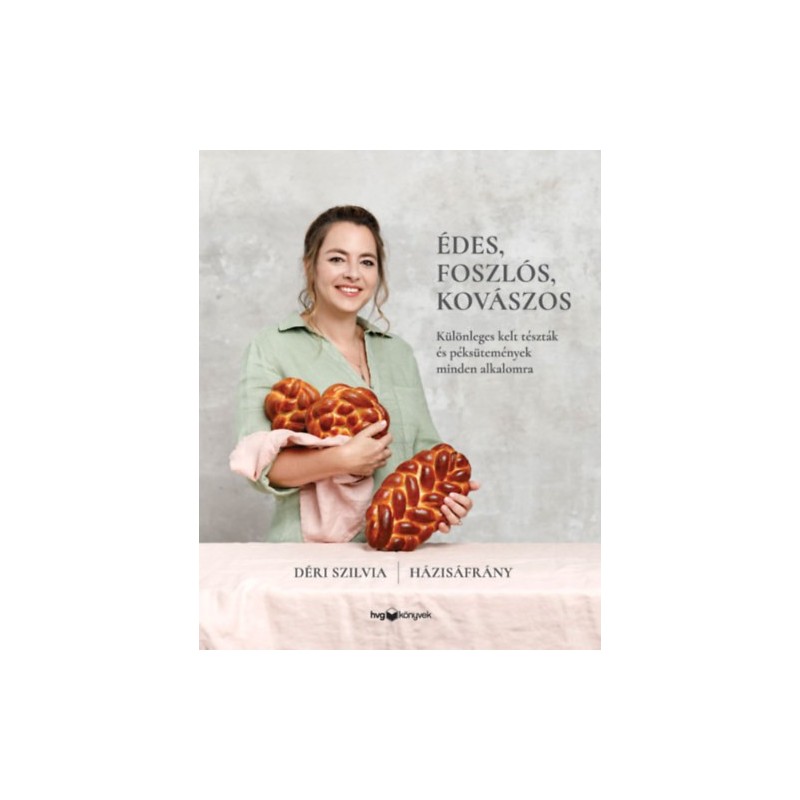 ÉDES, FOSZLÓS, KOVÁSZOS - A kalandvágyó kovászolók nélkülözhetetlen könyve Valljuk be, a frissen sült kelt tészta illata mindenkit rabul ejt. Legyen az túrós batyu, pizzás tekercs vagy egyszerű, ám gyönyörűen fonott kalács, babka vagy barhesz. Ha eddig igyekeztünk egészségtudatosan élni és önmegtartóztatást gyakoroltunk, ám cserébe éjszaka óriás kakaós csigával álmodtunk, most végre bűntudat nélkül valóra válthatjuk Déri Szilvia, Házisáfrány receptjei segítségével. Elegendő az élesztő helyett kovászt használnunk, hiszen az így érlelt, fermentált tésztából sokkal egészségesebb, könnyebben emészthető süteményeket készíthetünk. És mire számíthatunk még, ha kicsit több időt áldozunk a kovászos kelt tészta készítésére? Elképesztően gazdag ízvilágra, ínycsiklandó, édes és sós foszlós puhaságra; kovászból készült ropogtatni valókra és az örökké éhes barátok elismerő pillantásaira. "Nagyszerű dolog a kovászolás és a japán tangzhongtechnika keresztezése, mert egyszerre kapunk egészséges, pihepuha és hosszan eltartható pékárukat. Ez lehet az otthon sütés jövője!" Szabadfi Szabolcs, Szabi, a pék